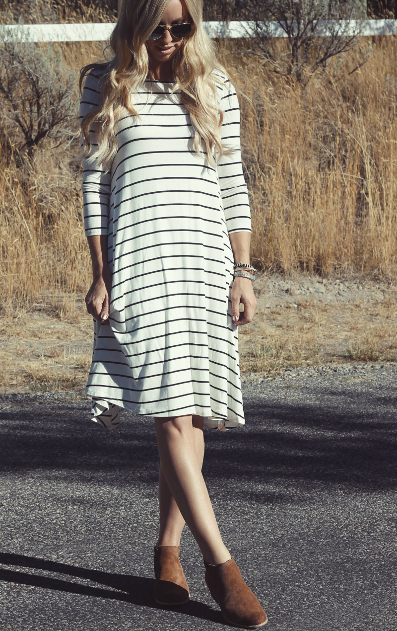 This adorable dress is soooooo comfy and I love that it has pockets. The best thing about it is that it's an all weather dress. For Fall I paired it with these adorable ankle boots and scarf. It's from Fancy Frills Boutique but you can get it for a limited time at a discounted price on Jane.com.